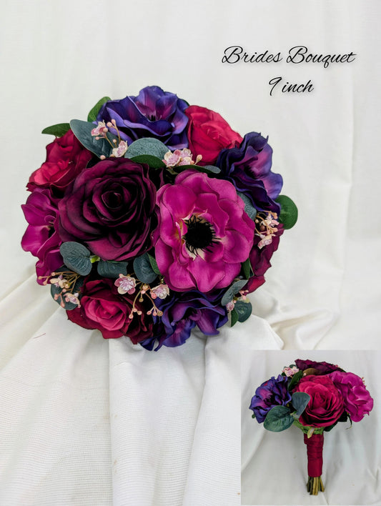 Purple Rose and Anemone Artificial Wedding Flowers